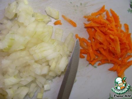 Морковь и лук очистить. Морковь натереть на крупной тёрке (нам необходима 1 столовая ложка моркови), лук мелко нарезать,