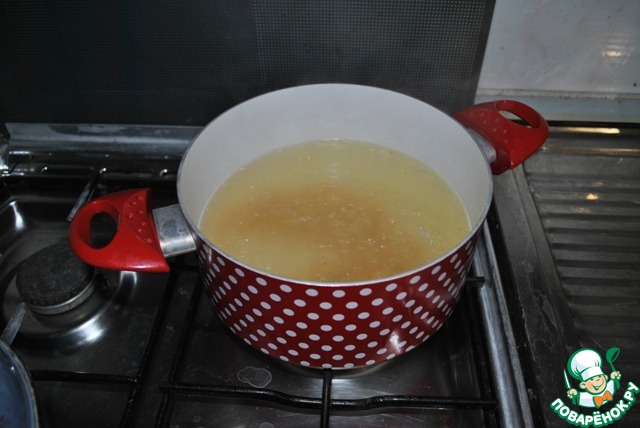 Почистить и нарезать лук мелкими кубиками. Картофель, морковь и лук добавить в кастрюлю с супом и варить 20 мин.