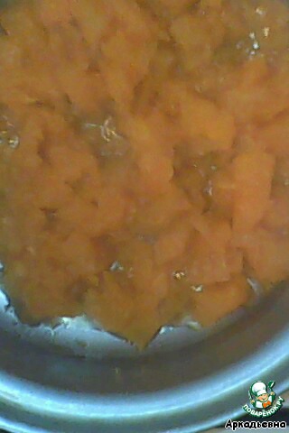 В маленьком сотейнике припустить мелко порезанную тыкву до готовности.