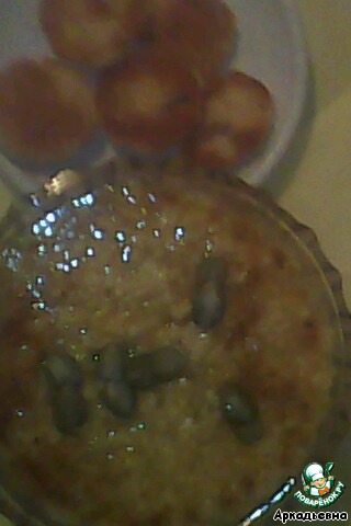 В тарелке оформить Карабаса-Барабаса тыквенными семечками и красным перцем.