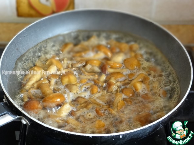 Опята выложить на сковороду и выпарить с них влагу;