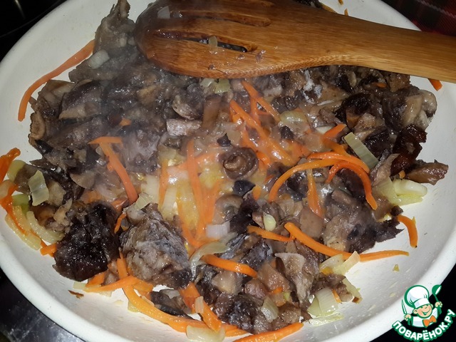 Что касается грибов сразу расскажу. Соленые грибы нужно промыть под проточной водой, нарезать и залить кипятком на 20 минут, потом откинуть на сито.