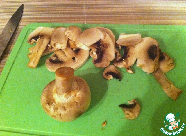 После того, как закипела вода, бросаем в нее лук и грибы. Варим все это на среднем огне минут пять.