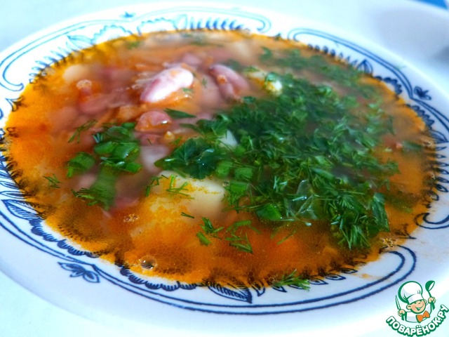 Суп готов, подаем к столу! Посыпаем свежей рубленой зеленью - зеленым луком, укропом, петрушкой.