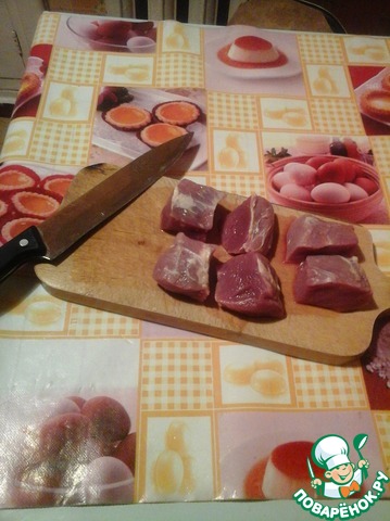 Мясо промыть, порезать крупными кусочками, залить 2 литрами холодной воды и отварить.