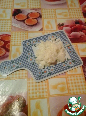 Лук мелко нарезать и поджарить на сливочном масле до золотистого цвета вместе с мукой.