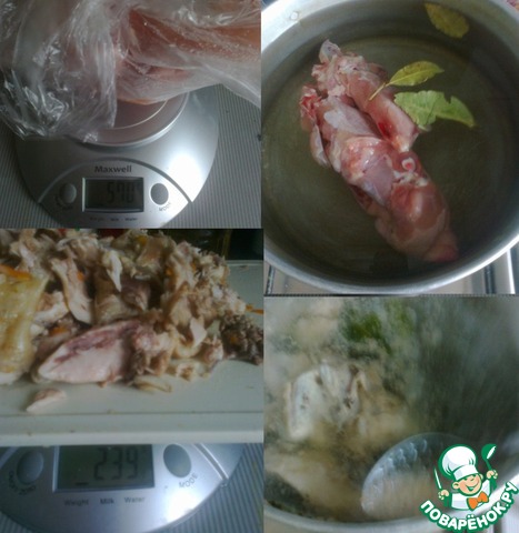 5 литров воды ставим на большой огонь, добавляем соль, лавровый лист и суповой набор (куриный). Как дойдет до кипения - снимаем пенку и прикручиваем. К этому моменту у вас уже должны быть готовы овощи.