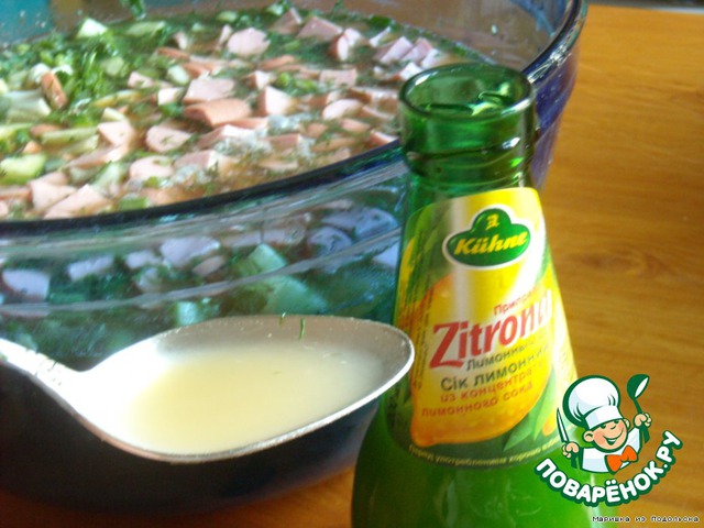 Потом лимонный сок. Если у вас его нет, то можно заменить уксусом.
