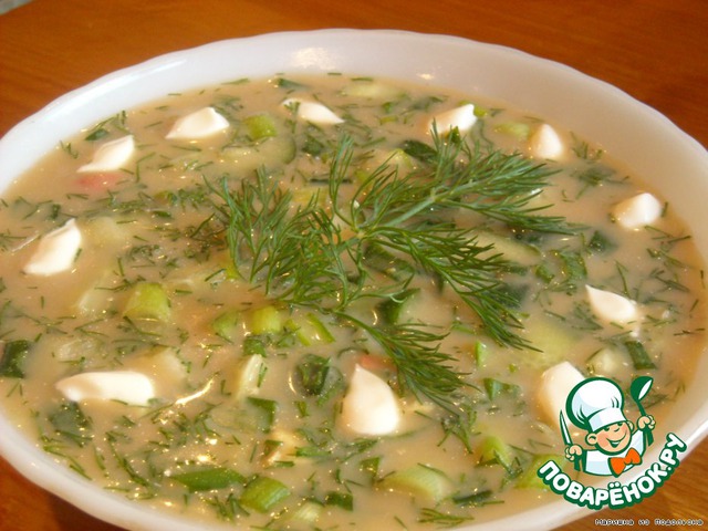 ...И вот что у нас получается. Теперь доливаем квас, сколько нужно, пробуем на соль и можно звать всех к столу!