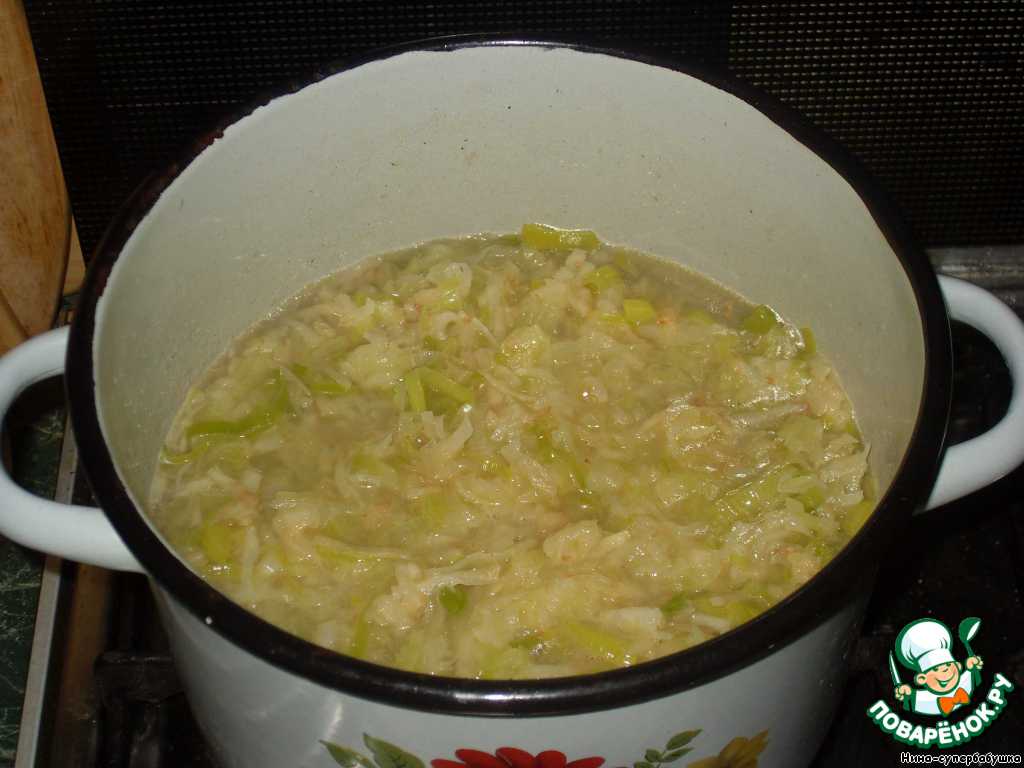 Добавить пассированные овощи и на маленьком огне варить до готовности картофеля.