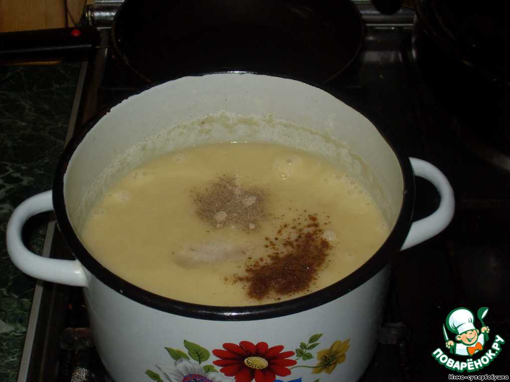 Прогреть на медленном огне, не доводя до кипения, снять с огня и оставить томиться под крышкой.