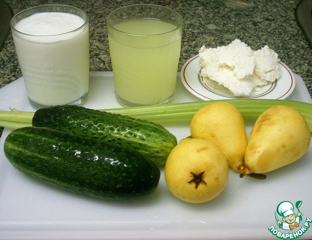 В рецепте указано 2 огурца и 2 груши, но у меня огурцы очень крупные, а грушки, наоборот, маленькие, поэтому я 3 взяла.
