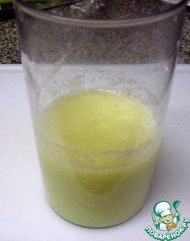 Огурцы, груши и сельдерей пробить блендером, добавить бульон, чеснок и йогурт.