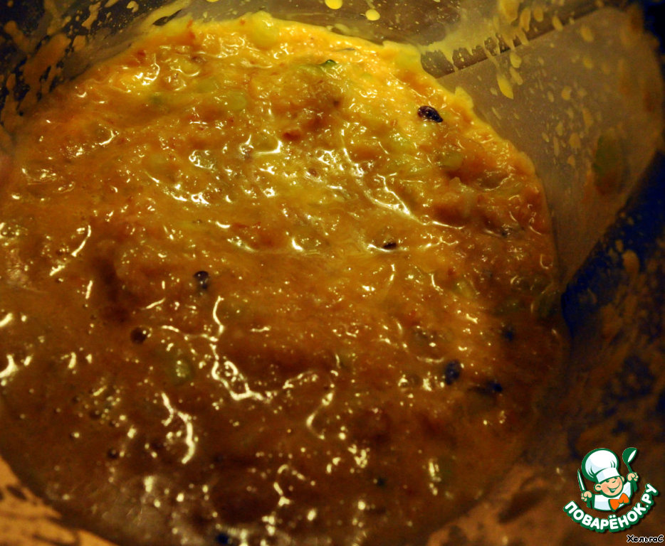 Всё измельчаем в блендере или миксером, можно добавить и тертую морковку.