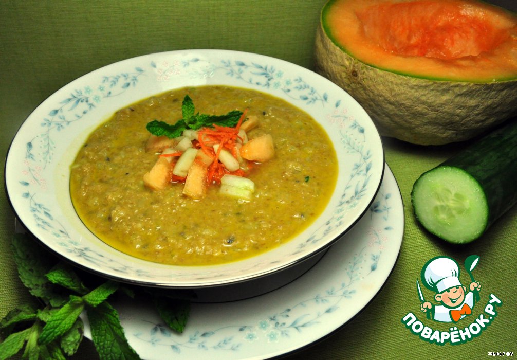 | Супчик с огурцом и дыней прекрасно подходит для диет. Цвета несут воспоминания о лете. |