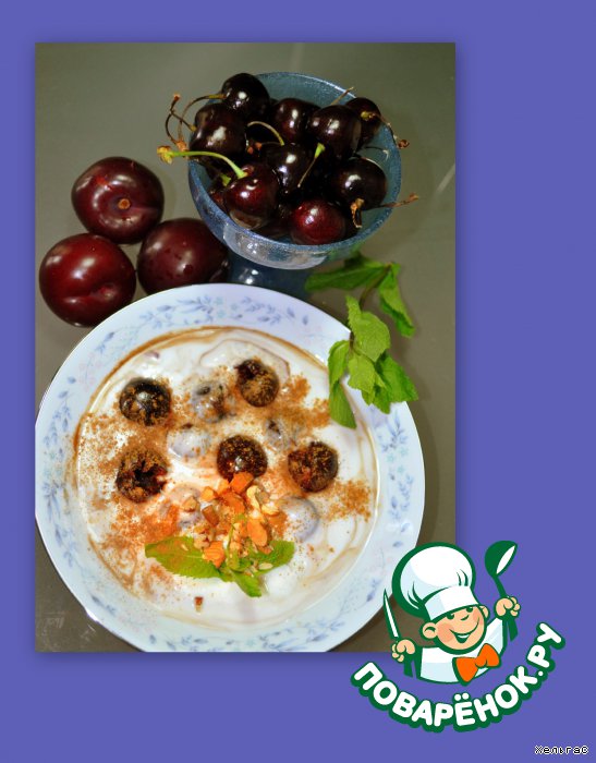 Приготовим йогурт и молоко, а ягоды, какие есть. У меня сегодня черешня.