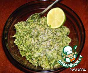 Всё хорошо измельчить. В полученную пасту добавить соль, перец, сахар, сок лимона или лайма. Всё хорошо перемешать.