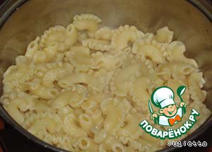 Макароны отварить в подсоленной воде до готовности (очень важно не переварить). Воду слить.