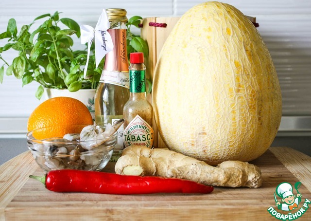 Дыню тщательно вымыть. Креветки предварительно разморозить. Шампанское хорошо охладить.