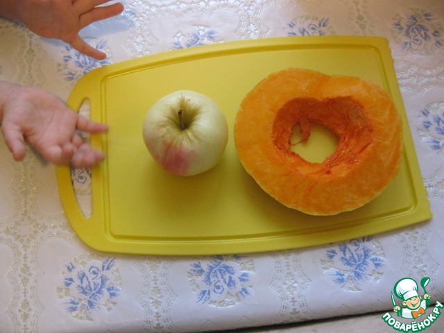 Для двух порций десертного супа понадобится одно яблоко и кусочек тыквы сорта Баттернат.