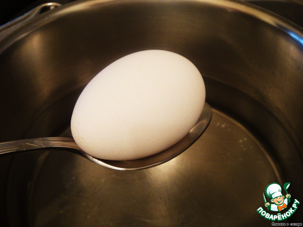 Перед тем, как начать готовить само блюдо, отвариваем куриное яйцо и оставляем его охлаждаться. Оно потребуется нам на заключительных шагах.