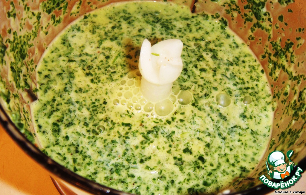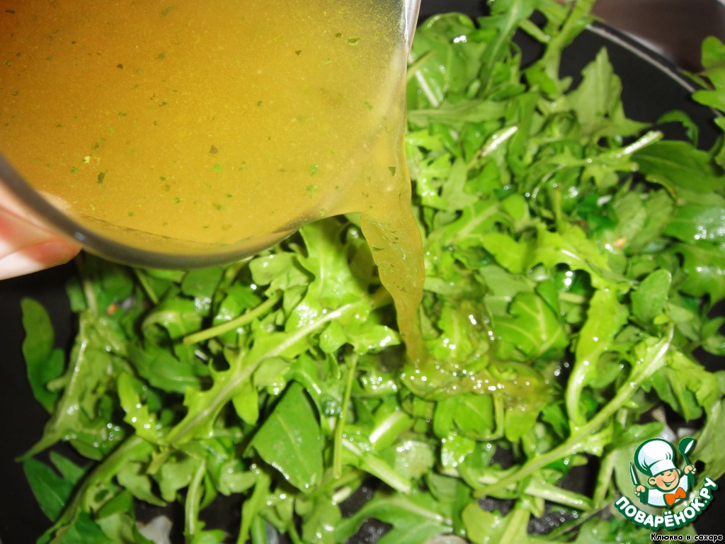 Переливаем полученную смесь в мисочку и добавляем к ней свежую нарубленную рукколу, которую мы приготовили на втором шаге.