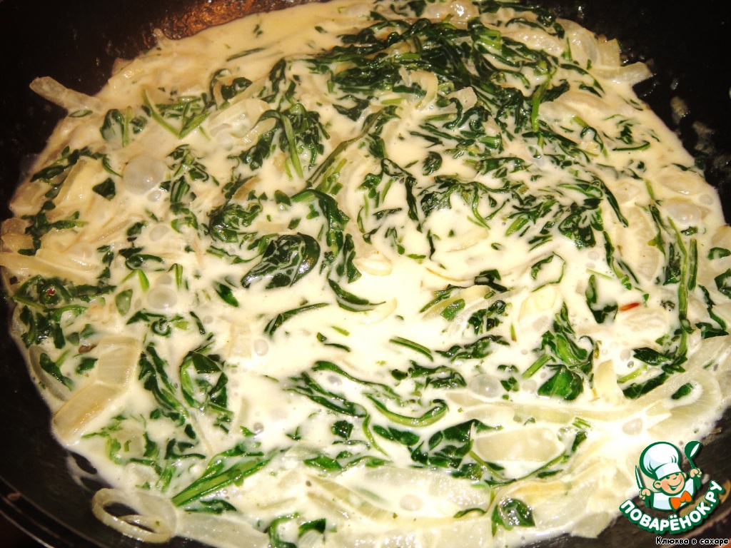 Потом вливаем сливки и продолжаем готовить ещё минут пять.