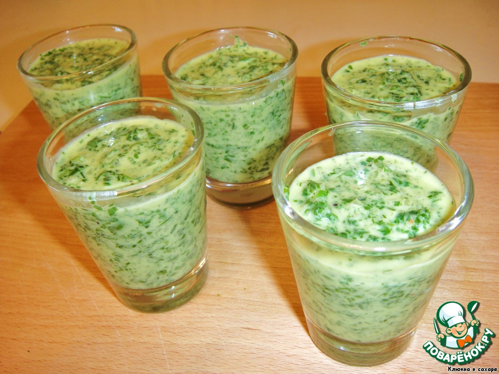 Равномерно разливаем крем-суп в маленькие стаканчики (у меня получилось ровно 5 порций по 50 мл каждая) и остужаем в холодильнике минут 10-15.
