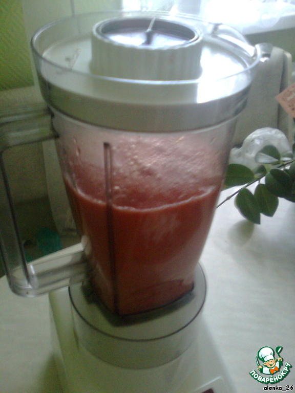 Помидоры надрезать накрест и опустить на 30 с в кипящую воду, очистить от кожуры, перец порезать, измельчить помидоры и перец в блендере.