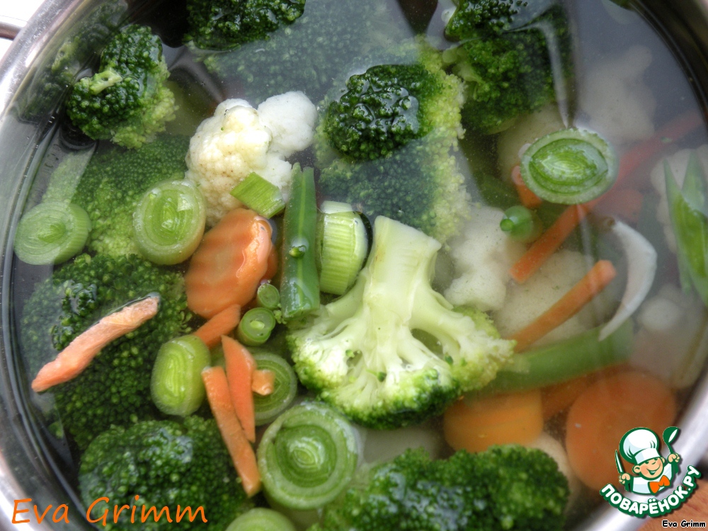 | Это мой наилюбимейший суп, я могу его кушать три раза в день, что и делала иногда в процессе диеты. Бульон варим на копченой грудке или ножке, аромат великолепный, вкус волшебный, калорий мало, сытный и красивый )) |