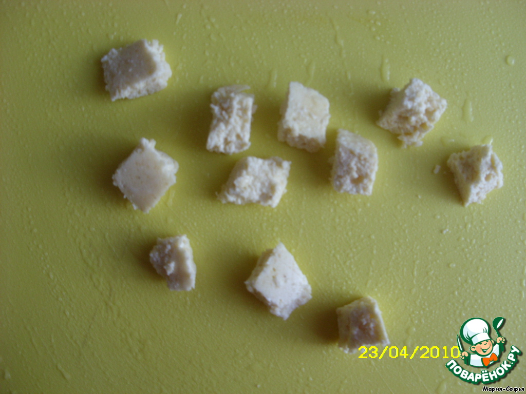 Творог, сыр, яйцо, мускатный орех измельчить и посолить. Я измельчила блендером, но можно творог протереть через сито, а сыр натереть на мелкой терке.