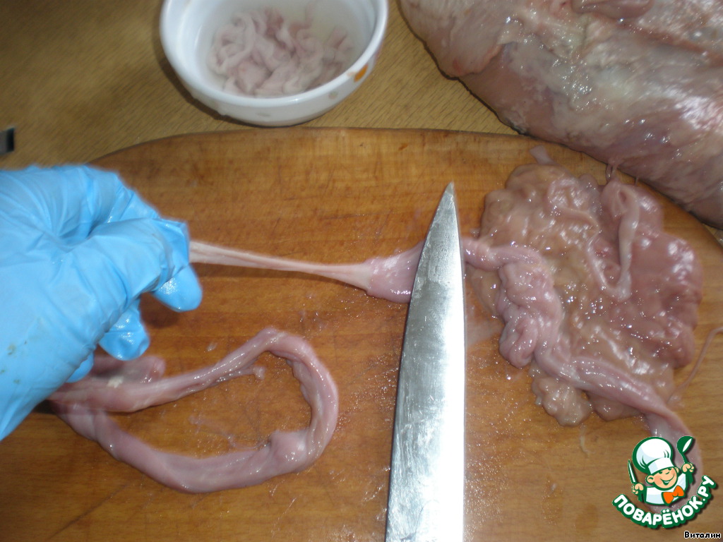 мясо напихивать не плотно, чтобы не лопнуло при запекании