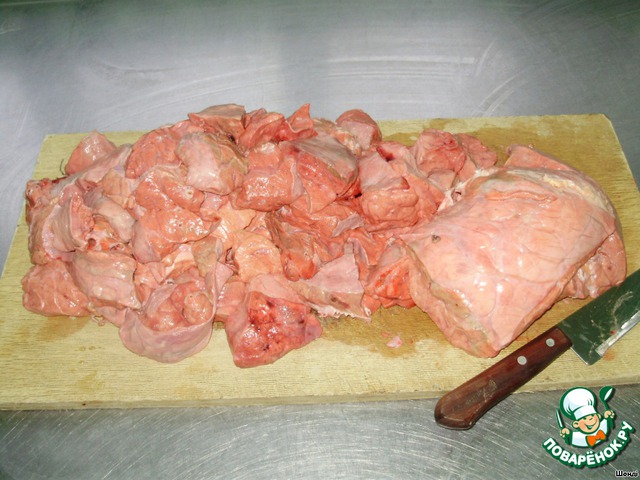 Субпродукты и свинину, нарезать кусочками и пропускаем через мясорубку, вместе с очищенным луком и чесноком.