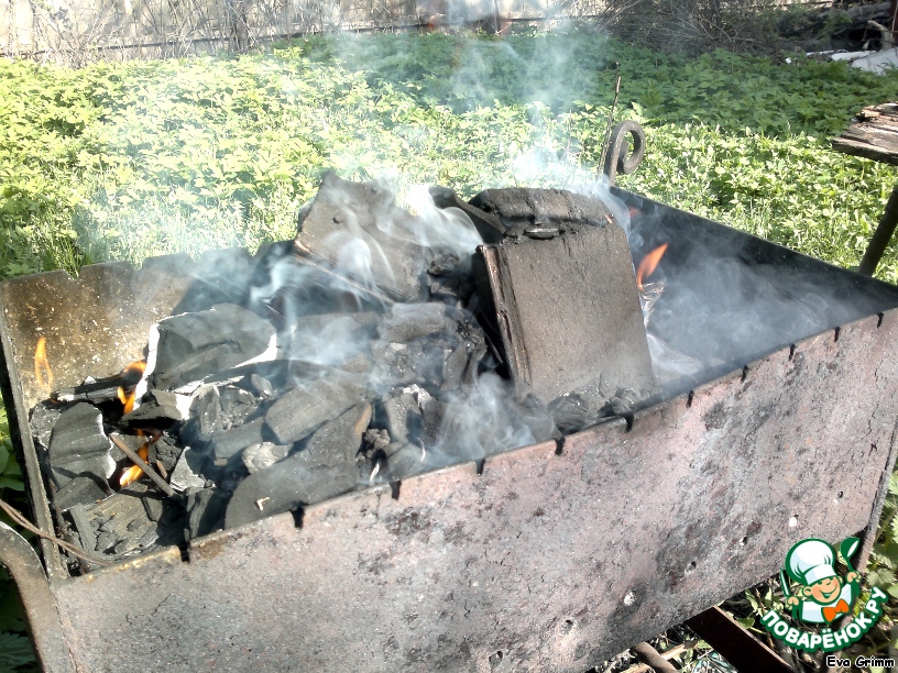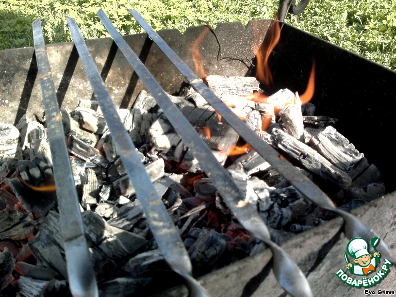 Достаем сосиски, насаживаем на шампуры и жарим на углях до готовности... Оставшийся маринад использовать как соус!