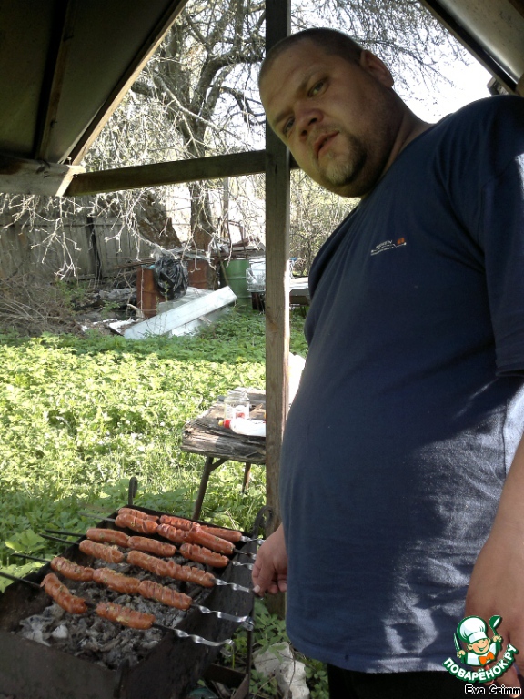 | Наши мужчины иногда очень хотят что-то сделать своими руками вкусненькое, и вот что вышло в это раз, лично я бы так извратиться с сосисками вряд ли додумалась ))) |