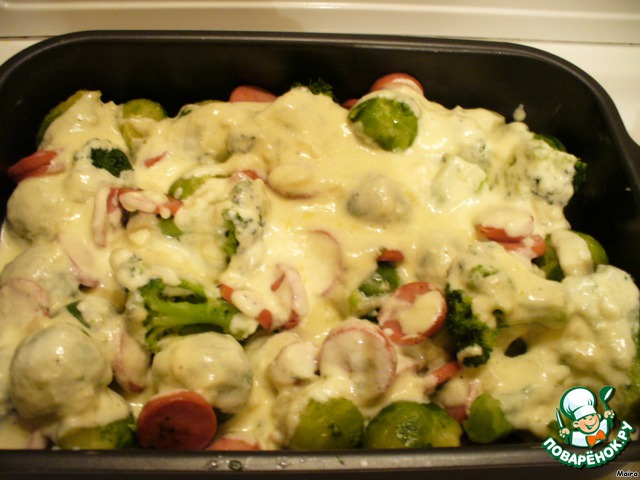 Овощная запеканка с сосисками