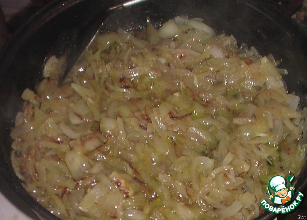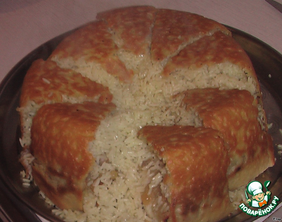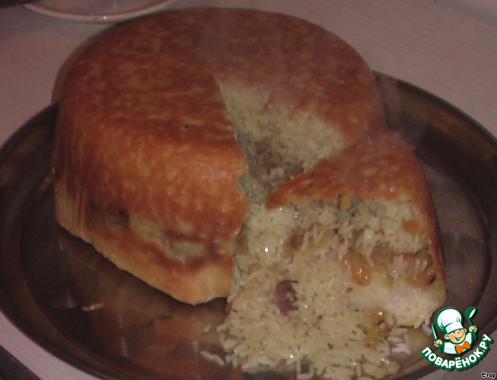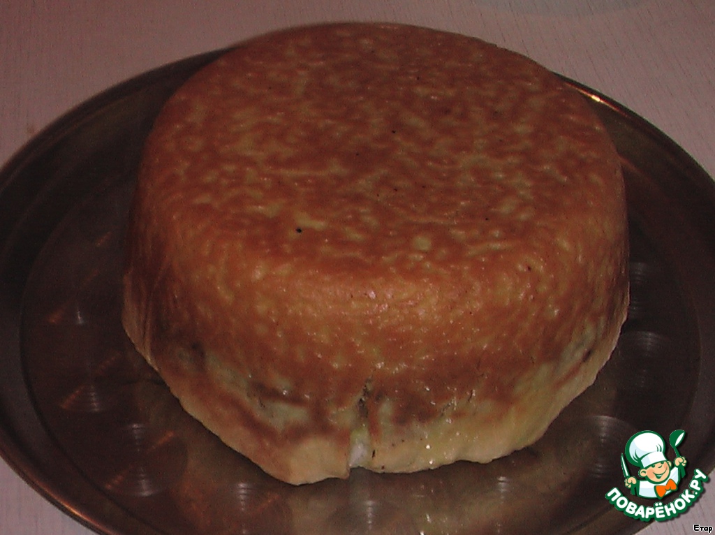 Переворачиваем кастрюлю на поднос. Здесь тесто играет роль казмака. Оно должна быть хрустящим.