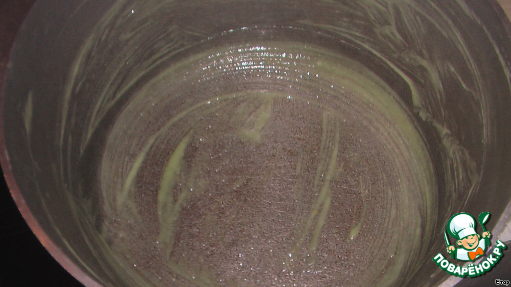 Чистую кастрюлю мажем немножко маслом. Можете здесь посыпать кунжутом для вкуса и на вид.