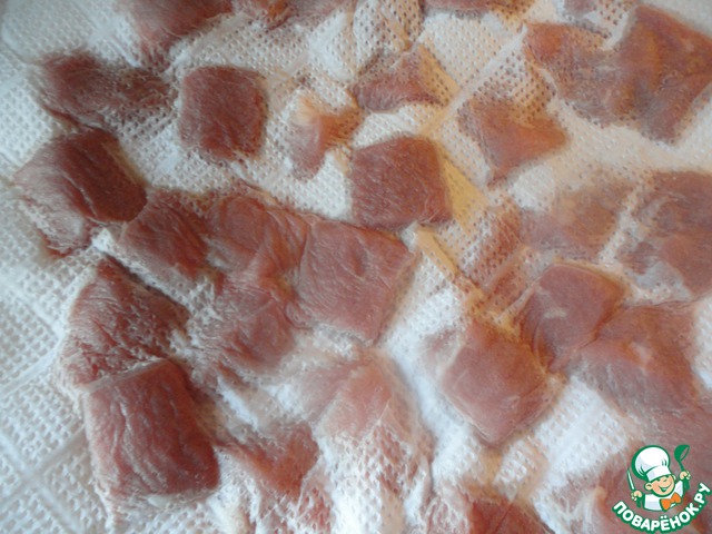Далее нужно хорошо просушить мясо бумажным полотенцем. Это очень важно, далее объясню для чего.