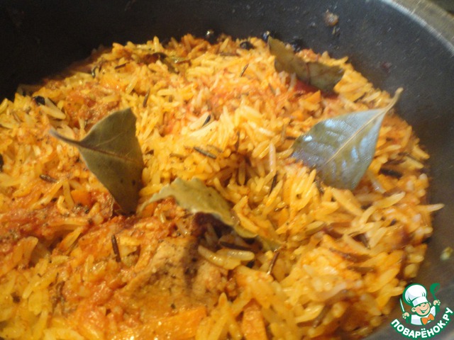 Вставляем в рис 5-6 лавровых листов. Доводим до кипения, уменьшаем огонь, накрываем крышкой и забываем о плове на 20 минут!