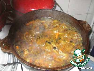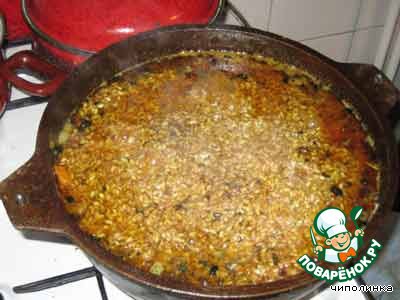 Закрываем крышкой, убавляем огонь. Выпиваем, засекаем 40 минут.