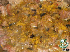 Проверяем готовность мяса. Готоово!!! Добавляем специи для плова (покупаю на рынке) я люблю, чтобы барбариса было побольше, поэтому добавляю еще немножечко дополнительно. Солим