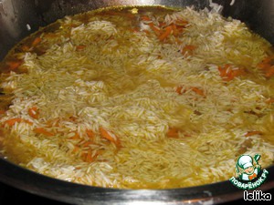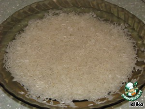 А в это время заливаем рис водой, времени, пока мясо готовится, рису хватит, чтобы впитать в себя нужное количество жидкости.