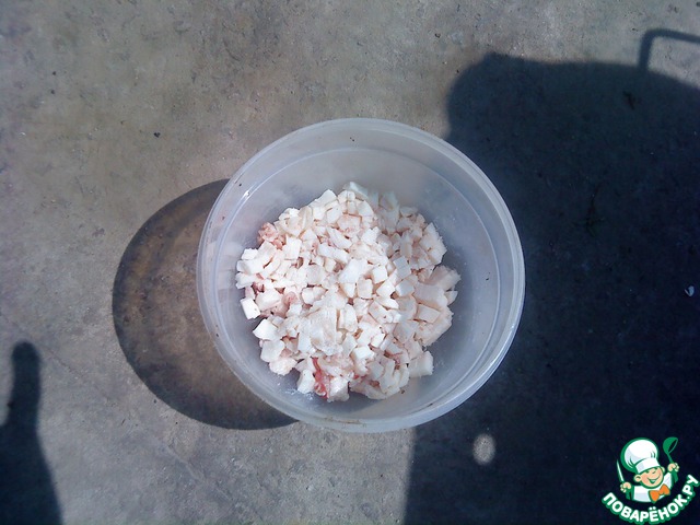Мясо и печень можно смешать, а сало нет, держим его отдельно.