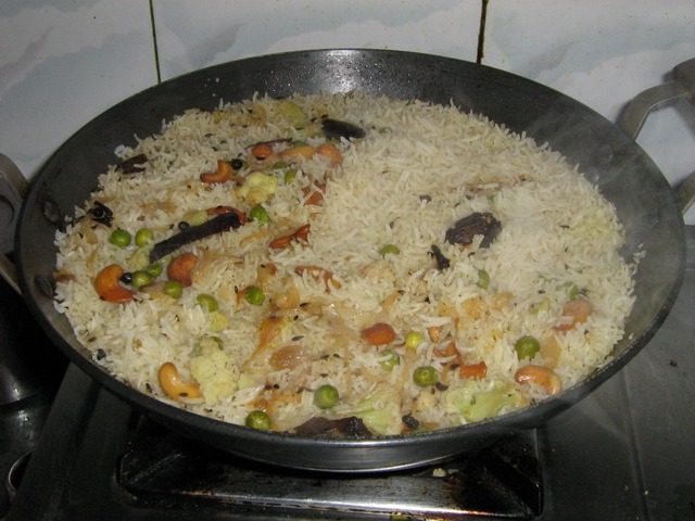 | В Индии пловом (пулао) называют именно тот, который без мяса, с мясом - это бирияни. Пожалуй, это единственное неострое блюдо, так как применяется как гарнир к полужидким блюдам из овощей, бобовых, реже мяса. Это больше праздничное блюдо, присутствует на каждой свадьбе, на разных мероприятиях с угощениями. В него можно положить разные овощи, которые под рукой- морковь, болгарский перец, стручковая фасоль, разные капусты, баклажан, картофель. |