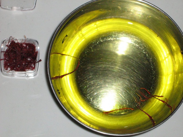 Кладём изюм, орехи, шафран с водой, в которой он был, топлёное масло. С риса сливаем воду, кладём в сковороду к овощам, солим, на сильном огне обжариваем рис 2 минуты, помешивая. Заливаем водой, чтобы она покрыла рис на 1,5 фаланги указательного пальца, доводим до кипения, закрываем крышкой, уменьшаем огонь и томим до готовности риса( у меня заняло 20 мин.)