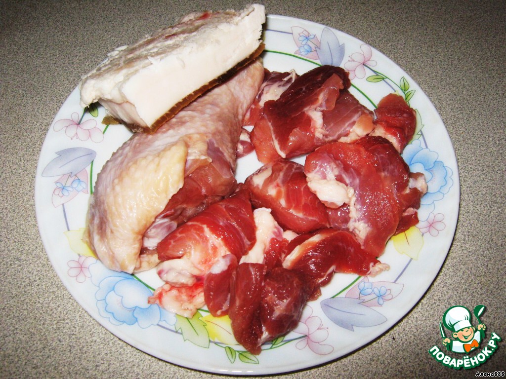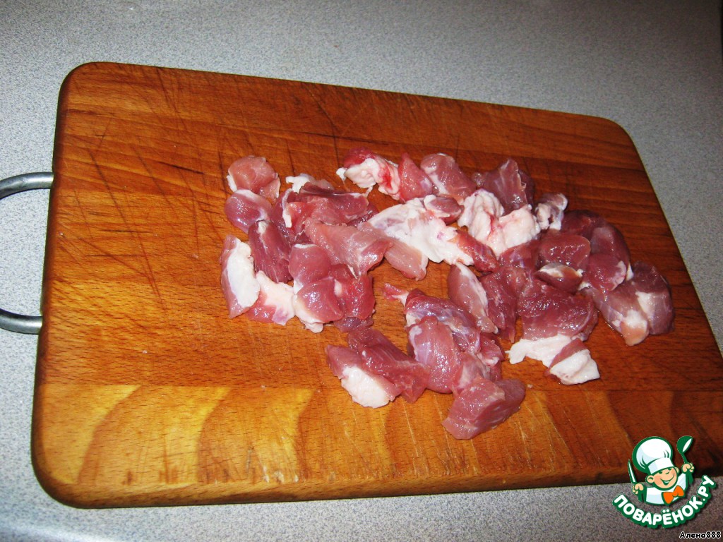 Курочка варится, а мы принимаемся за свинину. Режем её небольшими кусочками.
