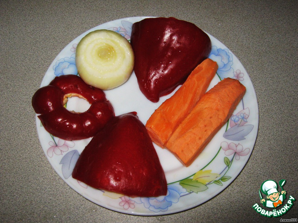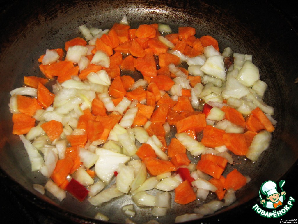 Пока в кастрюльке все варится, подготавливаем овощи - нарезаем морковь, лук, перец.