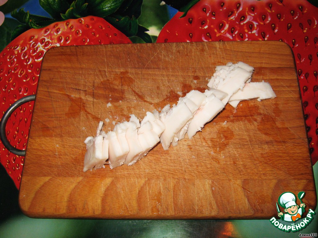 Срезаем и нарезаем небольшими кусочками мясо, косточку дарим собачке.