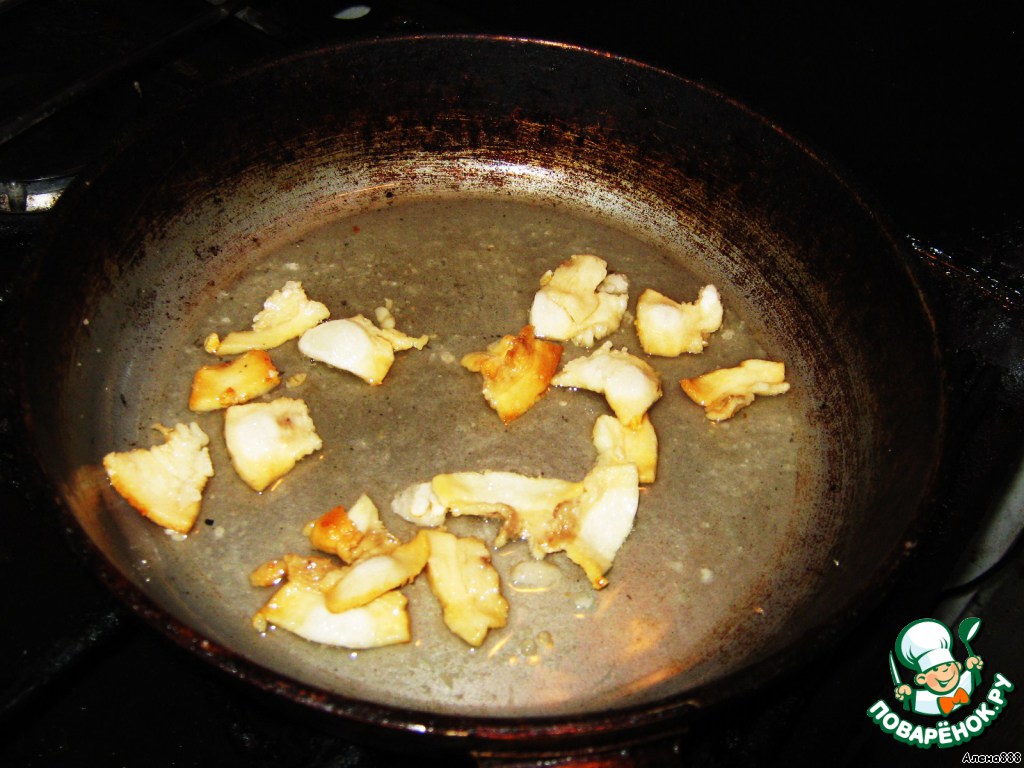 выкладываем в посуду с куриным бульоном, оставив на сковородке смалец - он понадобится для подготовки овощей,